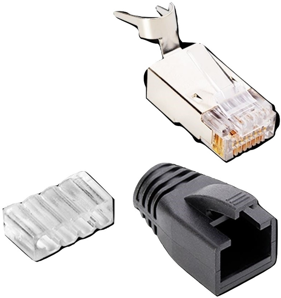 These low-profile high-performance male Cat connectors fit standard and solid wire up to 23 AWG. They feature a 4-up/4-down load bar, Gold-plated contacts, and are fully shielded. They terminate easily with the AudioQuest Cat6/6a/7 crimping tool. These connectors fit AudioQuest CAT700 Pearl, Forest, and Carbon cables.