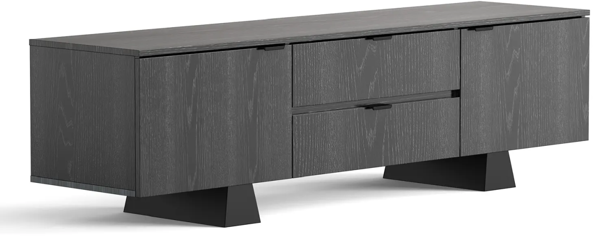 Black wood grain finish compliment’s today’s TVs and components.