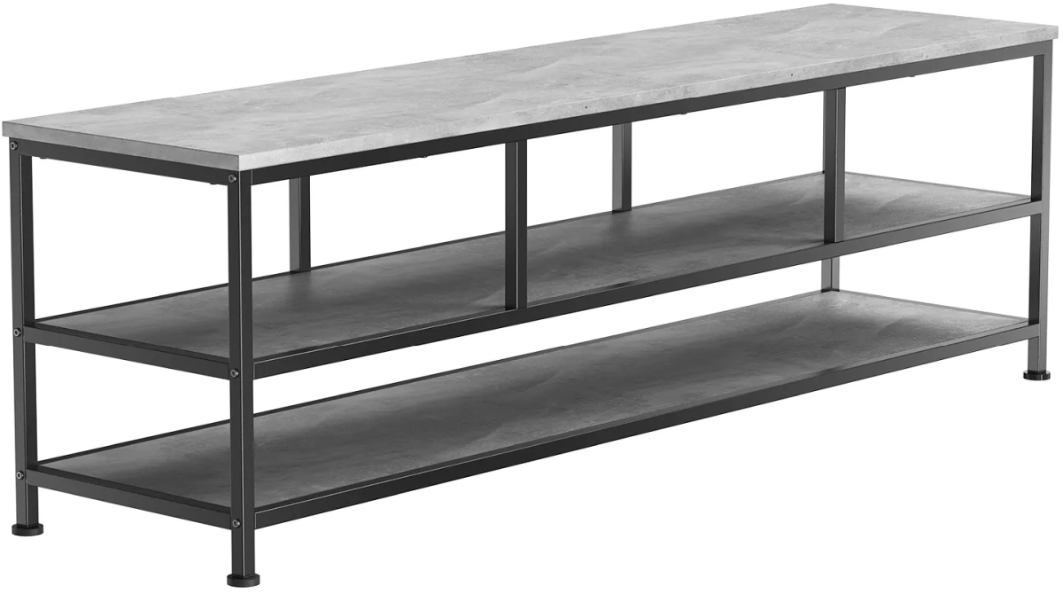 The ERTFL5-01BC is 63" wide with a heavy gauge steel frame to accommodate TVs 50"-70". The simulated concrete finish compliments today’s decor styles. The open architecture design keeps your equipment cool while also providing easy access.Read More