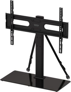 Swiveling Tabletop TV Stand with safety straps and 9 adjustable height positions for TV’s 40" to 75" with VESA patterns from 100mm to 400mm, modern design element including glass base and a weight capacity of 99 lbs.Read More