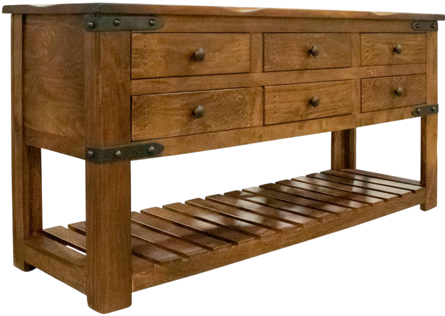 The Parota Sofa Table is expertly constructed using high-quality materials, ensuring durability and longevity. Its rich brown finish adds a touch of warmth and sophistication to any room, making it a versatile choice for various décor styles.Read More