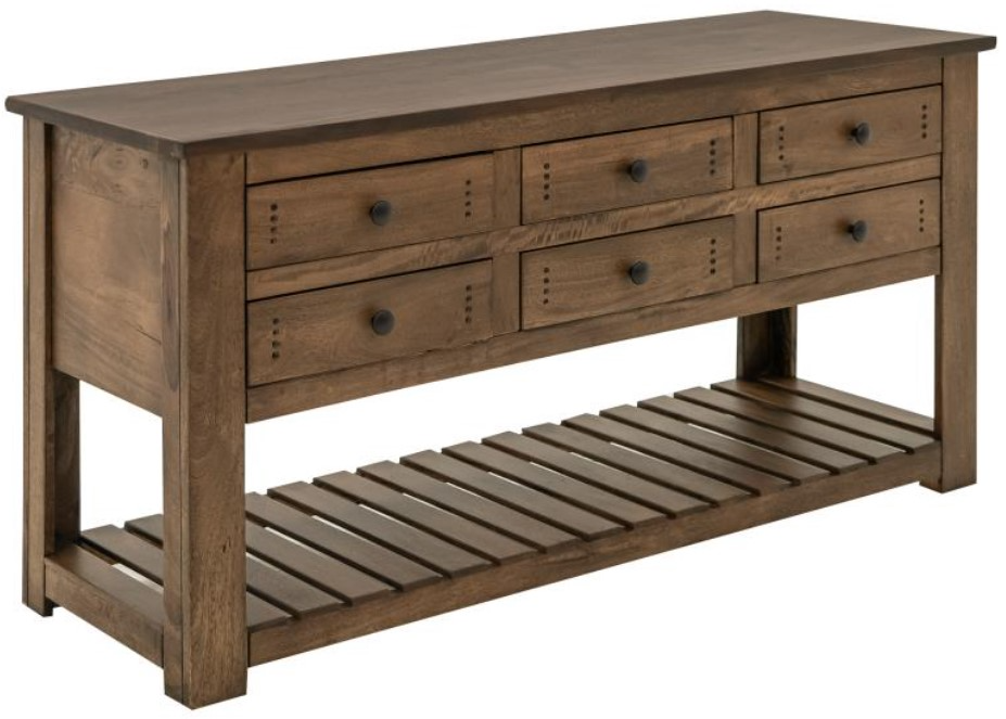 Tops are crafted from parota wood, while sustainable mango wood is used for the rest of the case piece