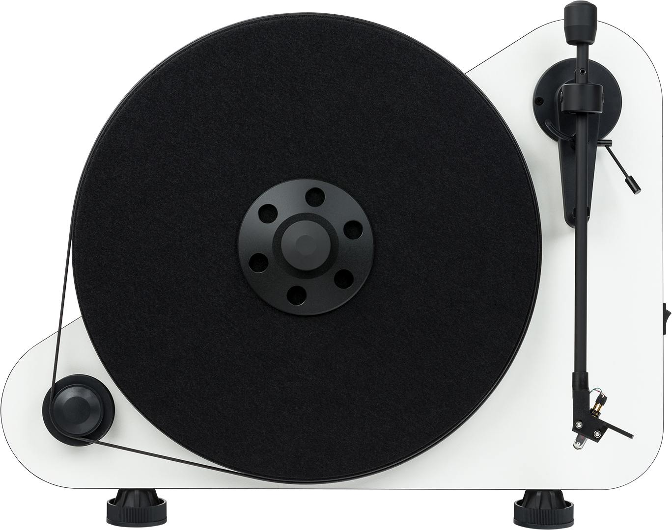 A turntable set-up does not need to be as complicated as rocket-science. Our VT-E turntable proves that. This good sounding belt-driven deck offers two versions for left– and right-handed users. The VT-E turntable can be positioned on a table or mounted on a wall. The fast installation process is made possible, because it comes pre-adjusted out of the box. No further set-up is needed. Tracking force and anti-skating are carefully set for the included Ortofon OM 5E cartridge. The turntable is available in black matt, red matt or white matt color.
