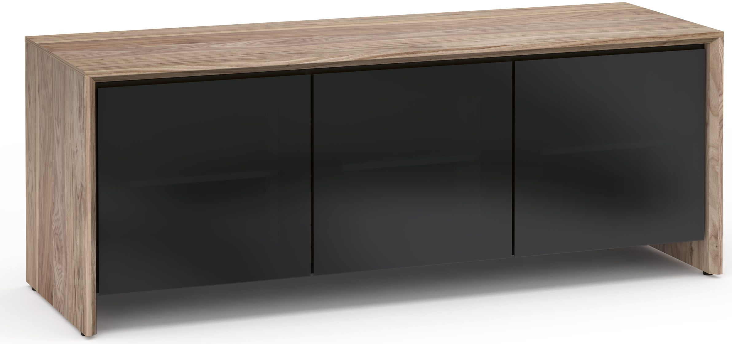 Salamander Designs® Barcelona 237 AV Cabinet-Natural Walnut/Black Glass with soft-close door dampeners and removable rear paenlRead More