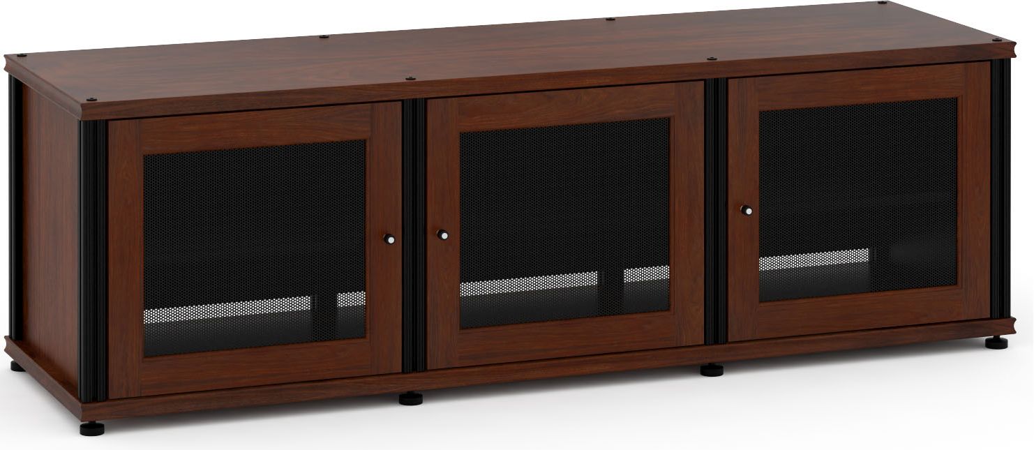 This is one our most popular low-boy, triple-door audio/video cabinets. It holds large amount of gear, and will accommodate a large sized TV. This cabinet may mounted to the wall by simply removing the feet and attaching the wall mounting accessory.