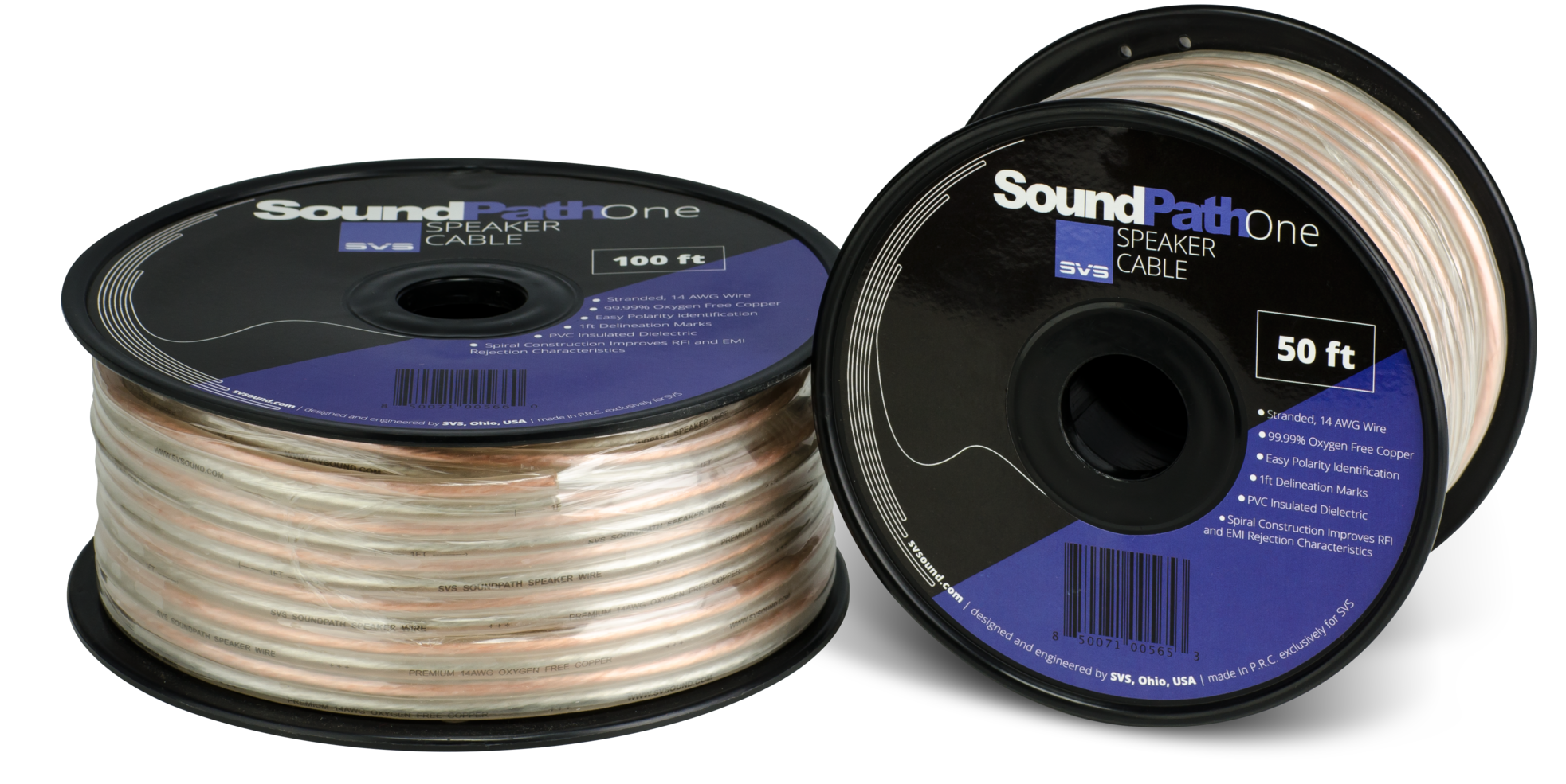 To make system set-up as easy as possible, SVS SoundPath One Speaker Cables are color coded for easy polarity identification and feature a rounded design for simple stripping and separation by hand. Foot markers on the cables allow for easy measurement and termination based on your room’s specific dimensions.